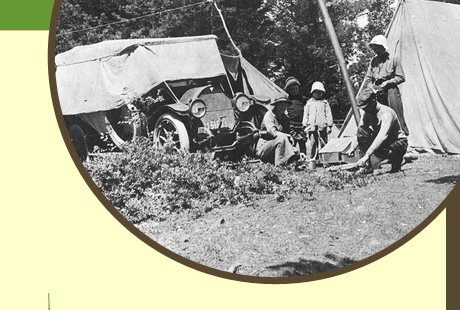 At its peak, before the Great Depression, over 10 million tourists were hitting the roads with tents and cook stoves. It is estimated that by the 1920s nearly half of all cars on the road were being used for camping. Some coined it “gypsying” and this romantic camping lifestyle took place along roads so poorly improved the mud was nicknamed “gumbo”. This was independence and family fun at .22 cents a gallon in a car laden with all manner of contraptions and modern innovations to make the trip a success. Thankfully for us, one travel essential these early vacationers brought along was the camera. The images captured create a visual history of that long ago time. Our first series of rustic photo stationery cards depict a patchwork from that familiar experience of the family vacation. These photographs, circa 1920, create a visual history of an exciting time when the modern era was still new. |